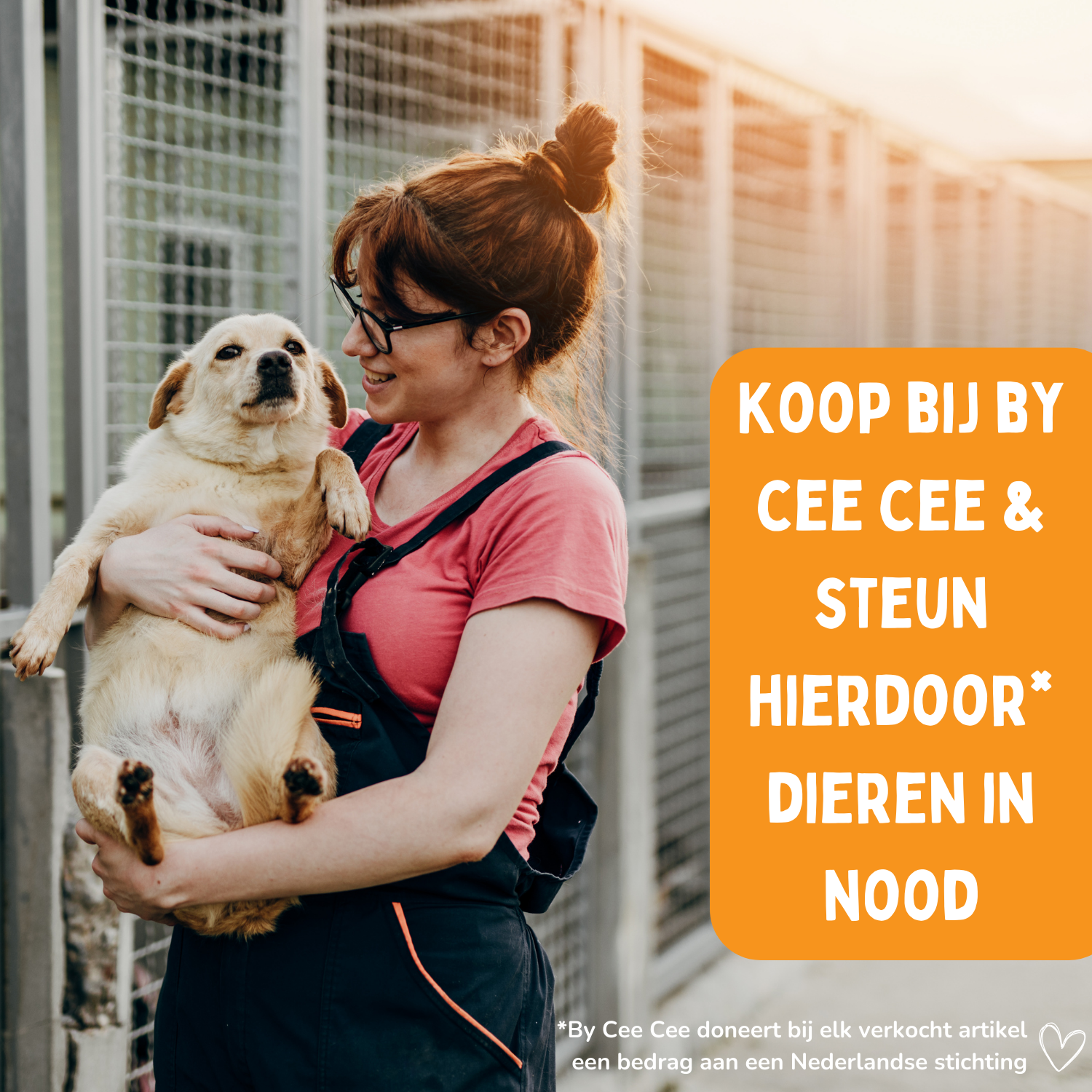 Wij hebben een zeer groot hart voor dieren en vinden het belangrijk om terug te geven aan de maatschappij. Daarom doneert By Cee Cee bij elk verkocht artikel een bedrag aan een Nederlandse stichting.